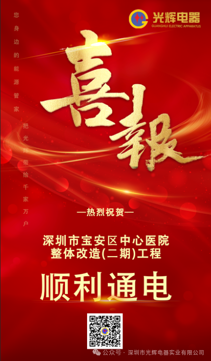 2025年4月30日,由光輝電器承建深圳市寶安區(qū)中心醫(yī)院整體改造(二期)工程順利完工并成功送電!